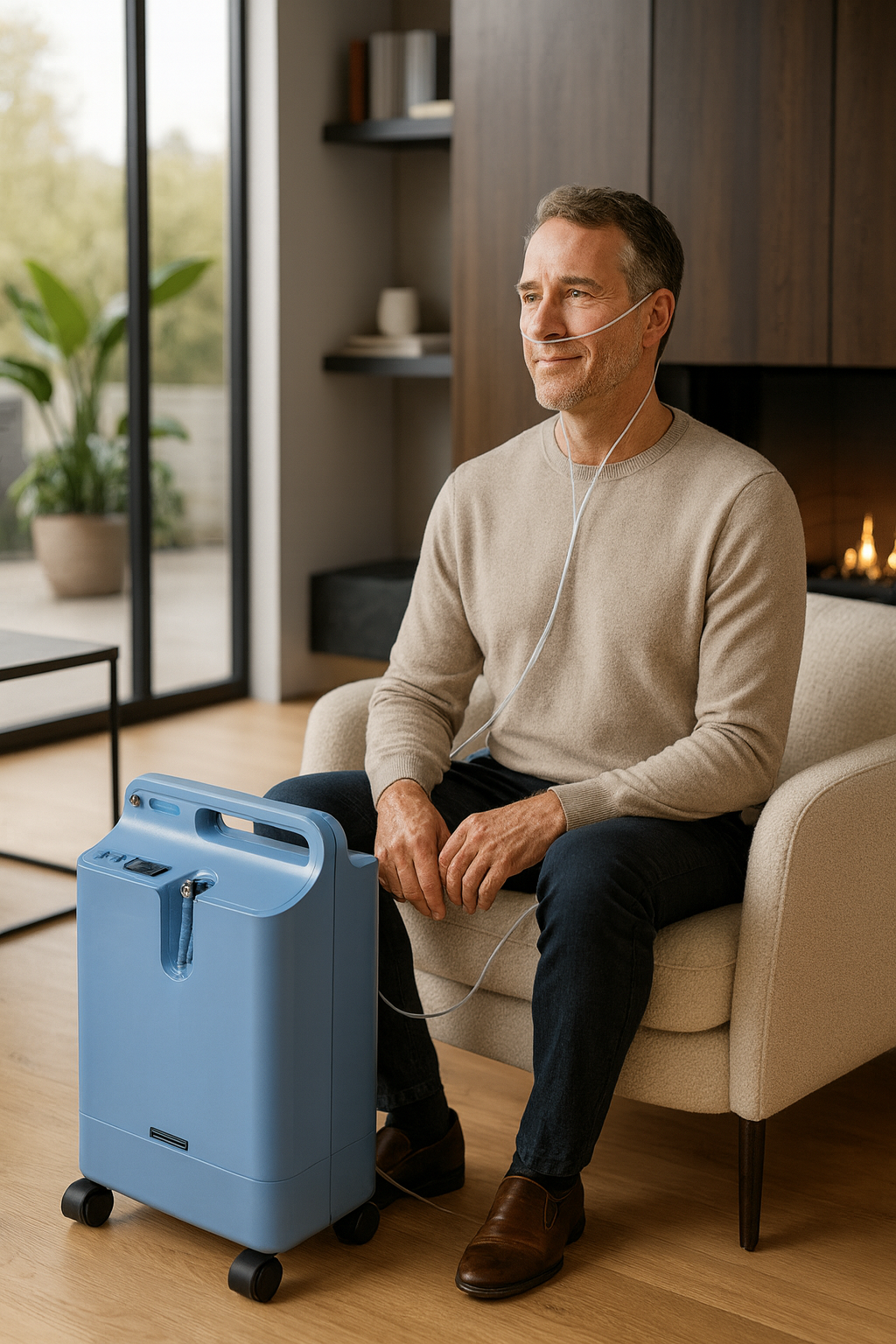 Experience the power of medical-grade oxygen therapy from the comfort of your home. Our oxygen concentrator rentals are designed to reduce swelling, speed healing, and boost energy—perfect for recovery after injury, surgery, cosmetic procedures, or simply pushing your physical limits. Extra oxygen increases the amount of O₂ available for cellular respiration, the process your cells use to produce ATP (energy).More ATP = faster tissue regeneration, making this especially beneficial for post-surgical incisions, bruising, and muscle/soft-tissue injuries.